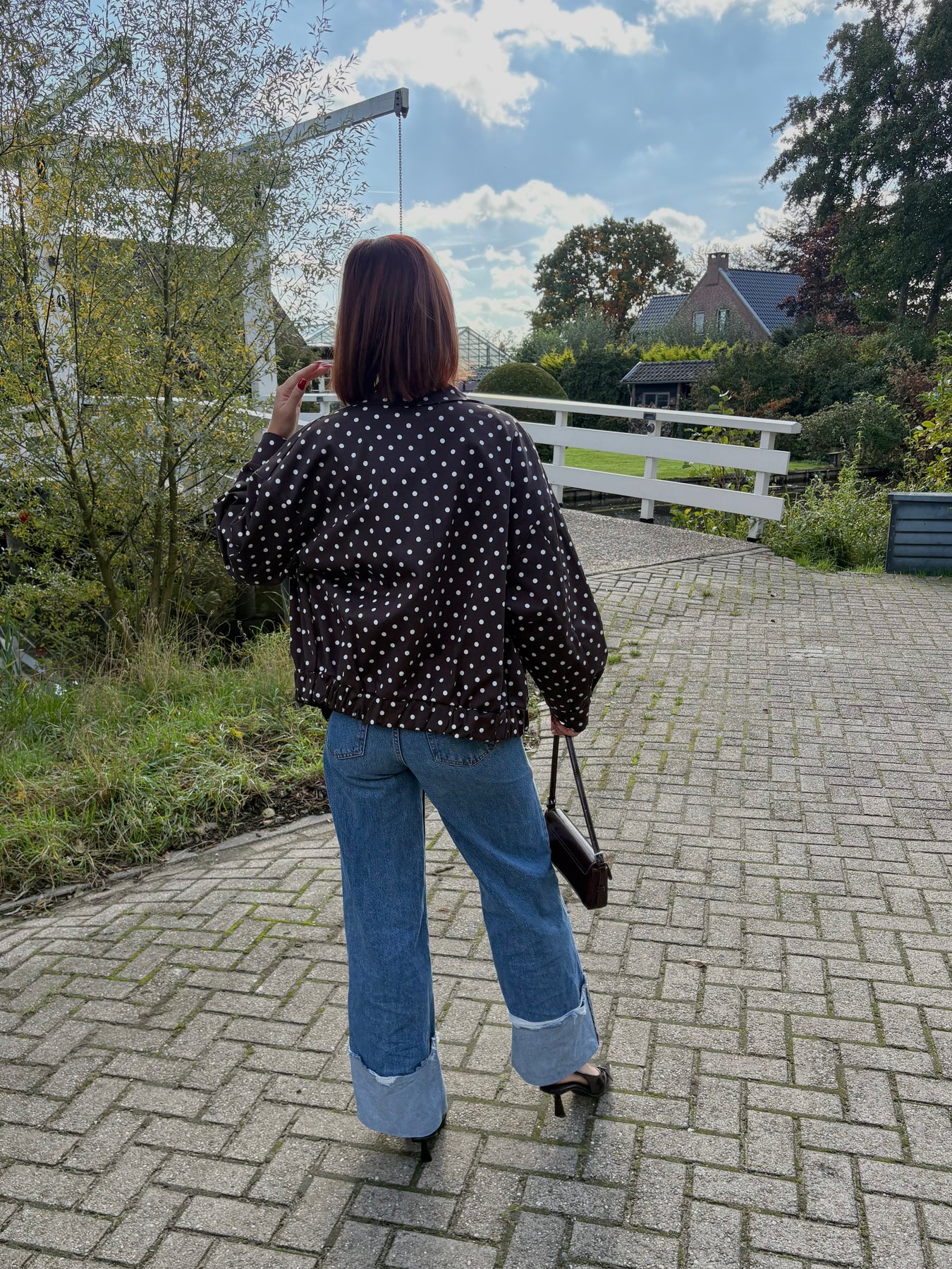 De Heaven Polka Dot Jacket brengt vintage vibes in een modern jasje. De diepe bruine kleur met speelse witte dots geeft elke outfit karakter, terwijl de losse fit zorgt voor een nonchalante, effortless look. Dit jasje is licht, zacht en perfect voor dagen waarop je nét iets extra’s wil zonder moeite te doen. Combineer het met denim, leer of een satijnen top, het werkt altijd. Verkrijgbaar in S, M en L. Wacht niet te lang, want deze favoriet is snel weg!