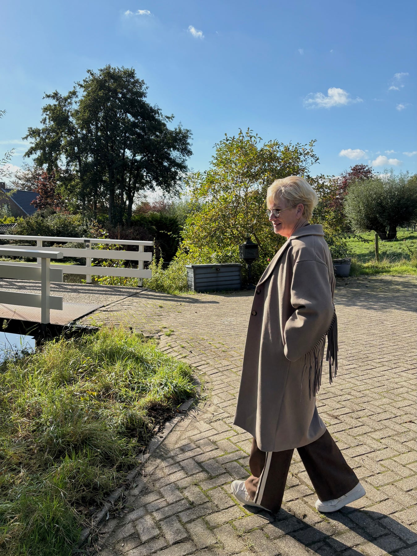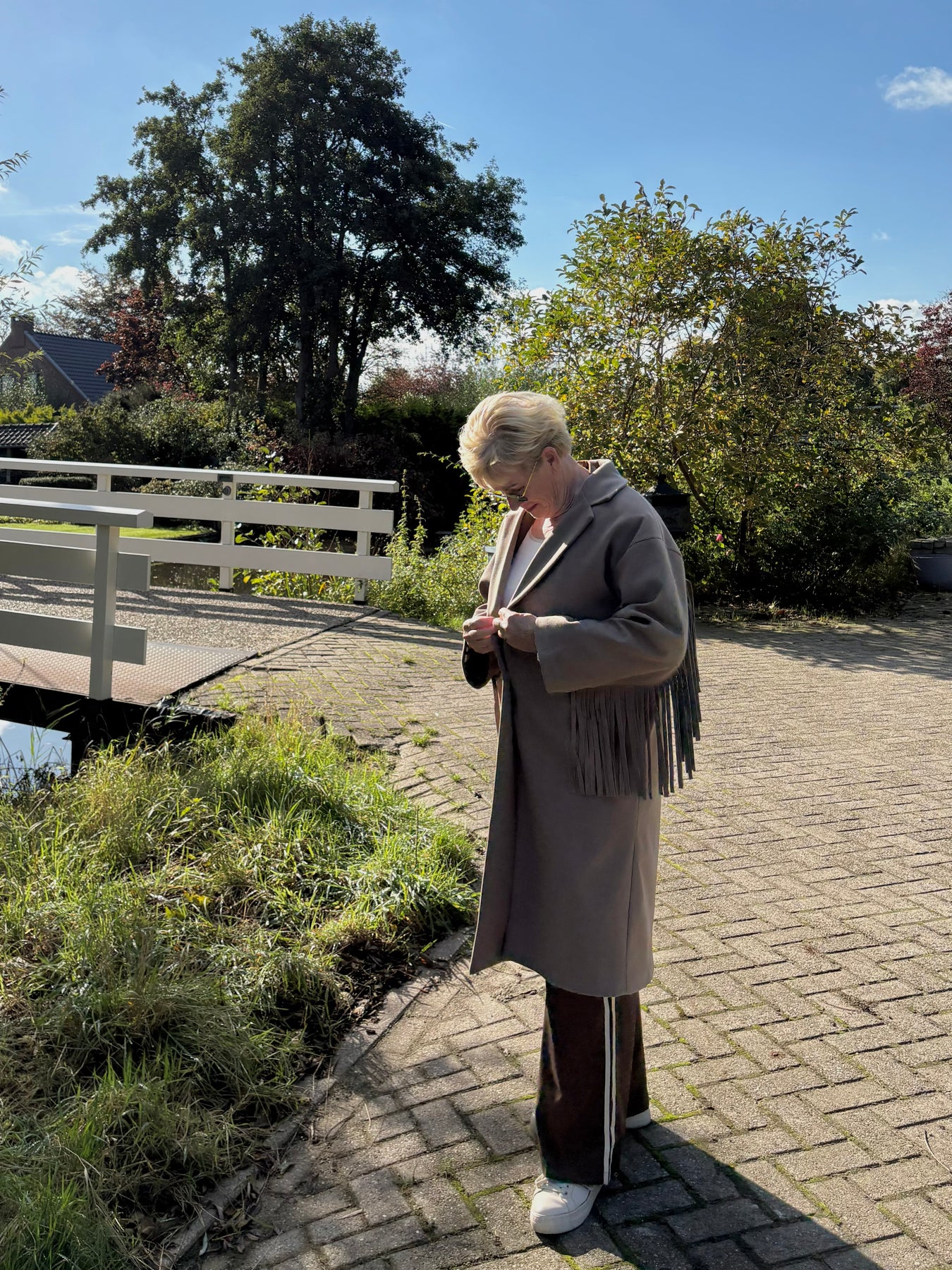 De herfst komt eraan en dat betekent: tijd voor stijlvolle lagen. Deze ruffle coat combineert een elegante uitstraling met een speelse twist dankzij de franjes op de rug en mouwen. De twee knopen aan de voorkant en de ruime zakken geven de jas een nonchalante, maar luxe look. Door het one size model valt hij soepel en comfortabel, ideaal voor frisse dagen. Verkrijgbaar in beige, donkerbruin en zwart, perfect om elke outfit moeiteloos naar een hoger niveau te tillen.